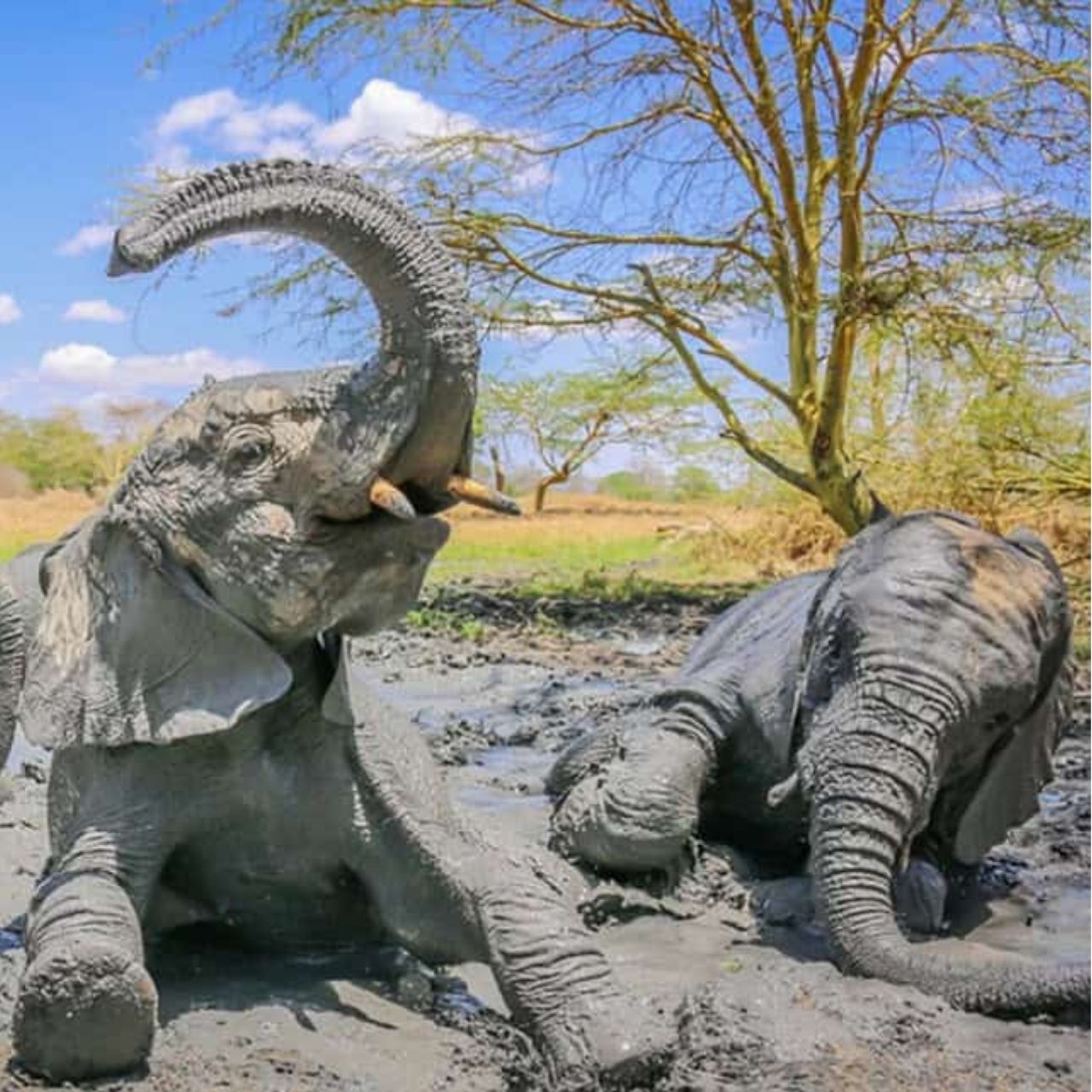 Playful Elephants Enjoy a Muddy Retreat in Kenya