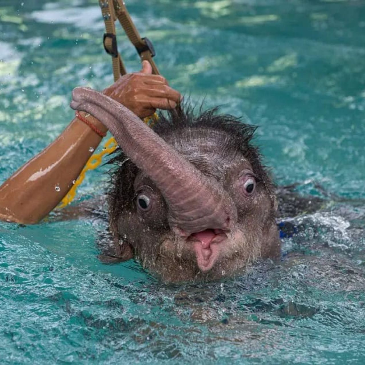 A Baby Elephant’s Heartwarming First Swim